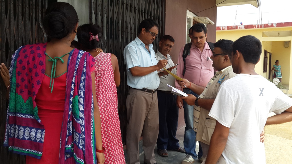 कोही छुटे कि : सुलभ सर्वेक्षणको क्रममा जिल्ला जन स्वास्थ्य कार्यालय चितवनबाट खटिएको टोलीले पटिहानी बजारमा बालबालिकालाई दिएको खोपको मात्रा अनुगमन गर्दै । तस्विर : आनन्द/सञ्चारपत्र